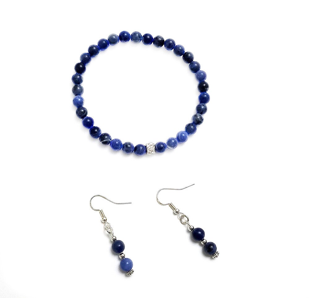 Blue Sodalite Gemstone Stretch Bracelet and Earring Set