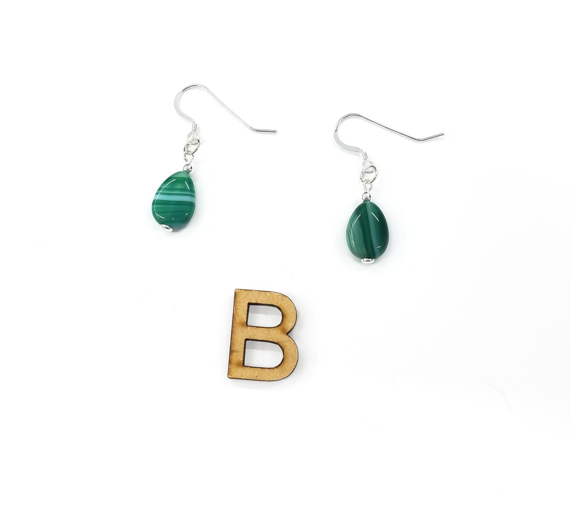 Green striped Agate Pear Drop Gemstone and 925 Sterling Silver Earrings