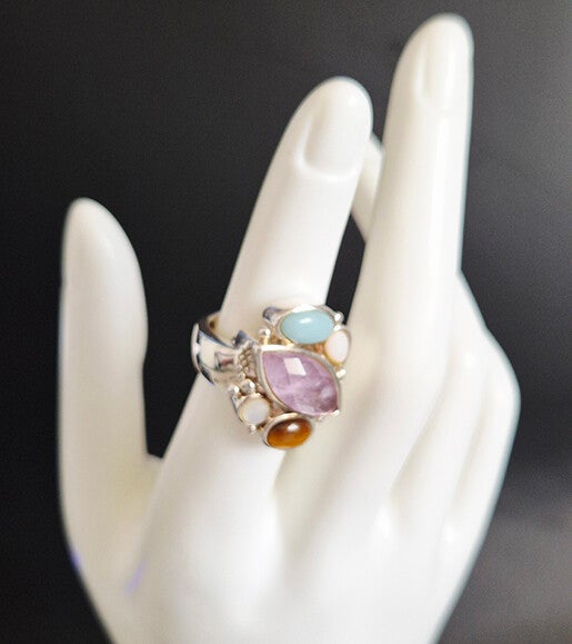 Multi coloured Gemstone and 925 Sterling Silver Ring